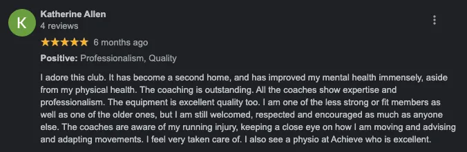 Our intro programme is designed to ensure the safety and success of our new members. At Achieve Functional Fitness, we know that every person’s fitness journey is different, and we’re here to help.
